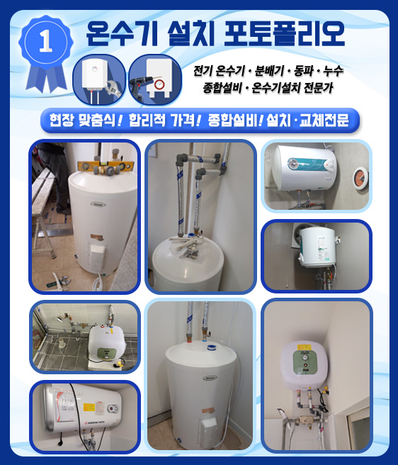 가정집 빌라 다세대주택 상가건물 영업장 전기온수기부터 대용량 온수기설치까지 현장 맞춤식으로 합리적인 가격과 좋은 서비스를 보장합니다.