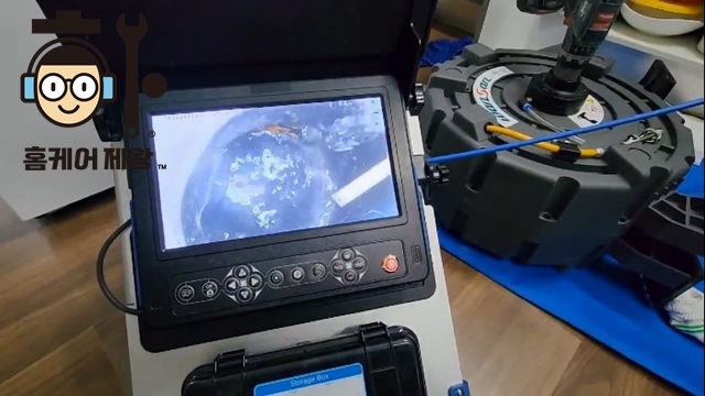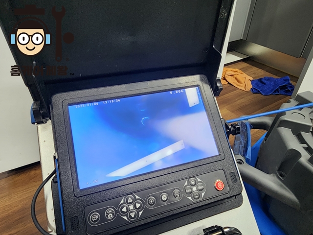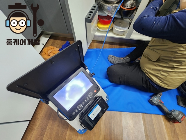 첨단 장비인 내시경 기계를 사용하여 주방 싱크대 막힘 원인을 제대로 파악합니다.